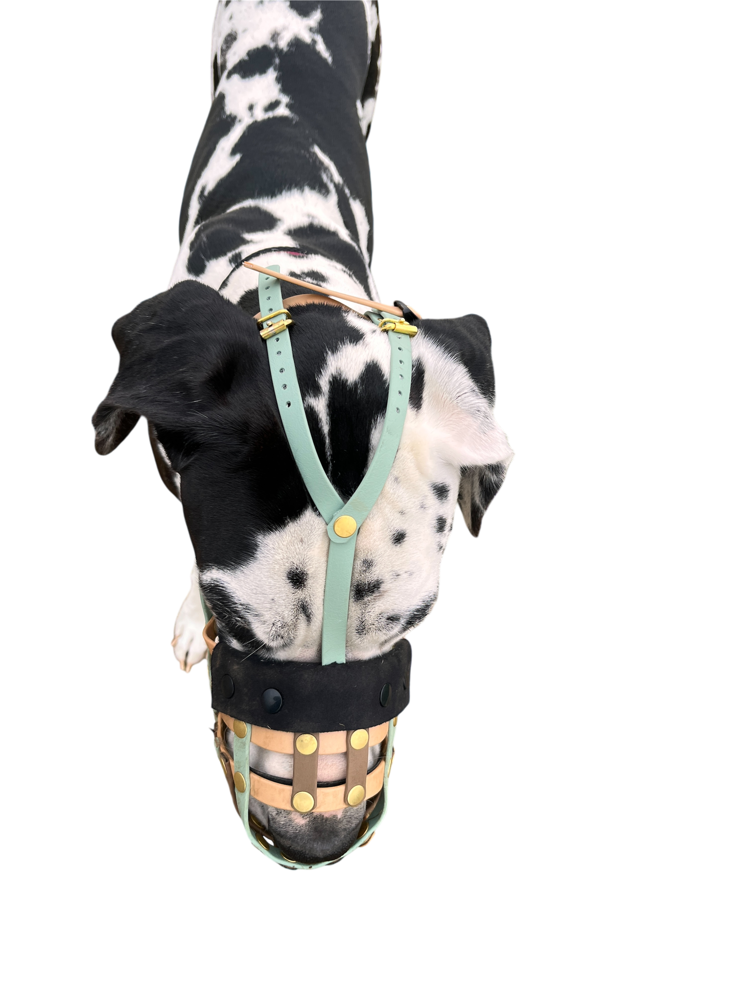 Entweder kann der geteilte Stirnriemen direkt bei eurer Maßanfertigung mitbestellt werden oder aber durch eine Nachbestellung (als Austauch) unter https://www.maulkorbwerkstatt-shop.de/9140/Geteilter-Stirnriemen